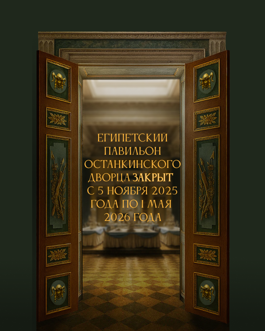 Египетский павильон Останкинского дворца закрыт на зимний сезон с 5 ноября 2025 года по 1 мая 2026 года.
