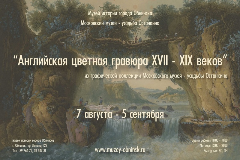 В музее истории города Обнинска открыта выставка английской цветной гравюры, представляющая зрителям интересную подборку из графического собрания Московского музея-усадьбы Останкино.